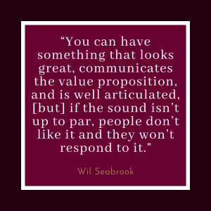 “I will say, as someone who has auditioned hundreds and hundreds, if not over a thousand, voiceover artists and listened to very talented people doing the same take over and over again, the recording quality, the sound quality, absolutely matters. And it’s an immediate… There are so many people for me where it’s an immediate ‘no,’ because the moment I hear the sound quality and it’s not totally up to a pro level, I assume tons of things about that.” – Wil Seabrook