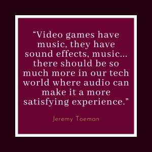 We talk about UX design for everything from software apps to smart devices, and how he’s taking his cues from the video game industry. “Think about tech products,” he says, “video games have music. They have sound effects, music… There should be so much more in our tech world where audio can make it a more satisfying experience..” He tells us about his daughter, who’s just published her first indie video game, and the hands-on approach to Foley sound effects that her experience taught him. “We were in my car and it was making this weird noise when you open the door,” he recalls, “and she’s like, hang on, can everybody be quiet? And she grabbed her phone and went to record it.”